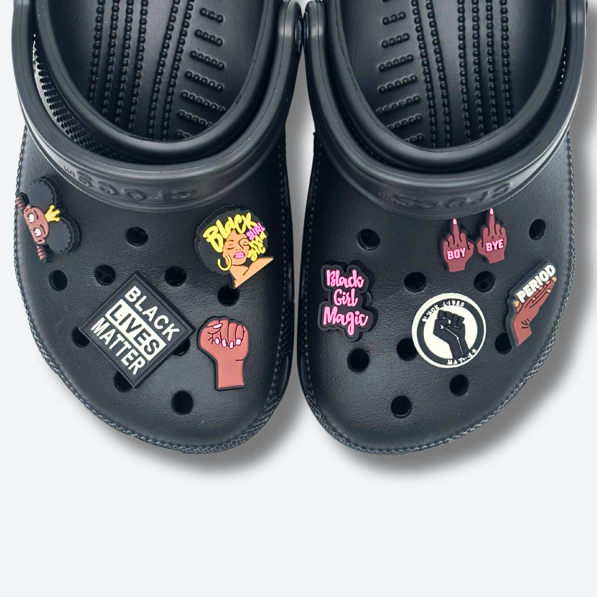 Un pack fier et féminin : "Boy Bye", "Black Girl", poing levé, symboles engagés… Pour toutes celles qui veulent afficher leur force, leur style et leur identité sans compromis.