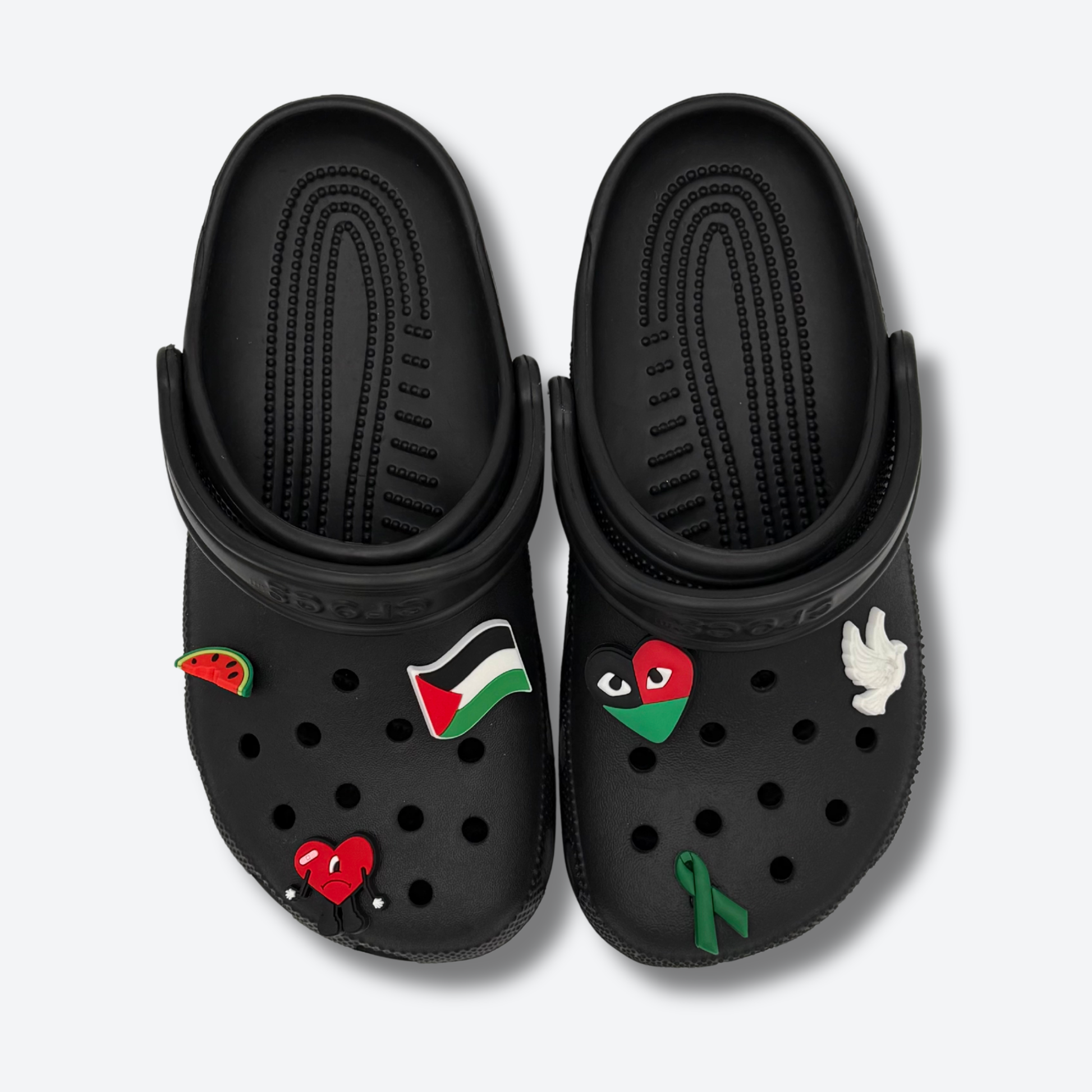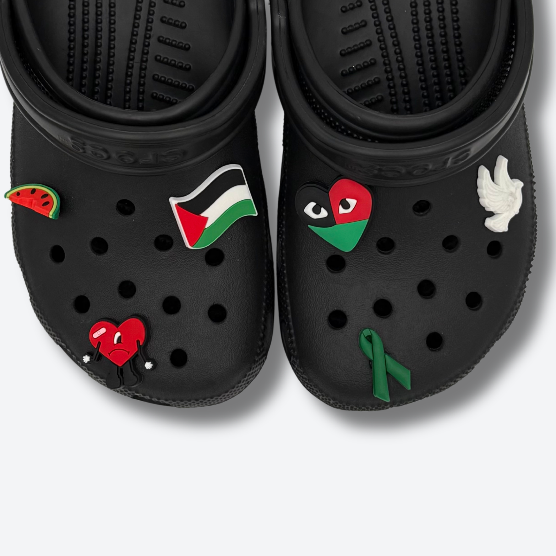 Un pack rempli de sens et de symbole : pin’s drapeau de la Palestine, pastèque, colombe, cœur… Parfait pour personnaliser tes Crocs avec un look engagé et plein de fierté. Une façon stylée d’afficher ton soutien et tes valeurs❤️🕊️