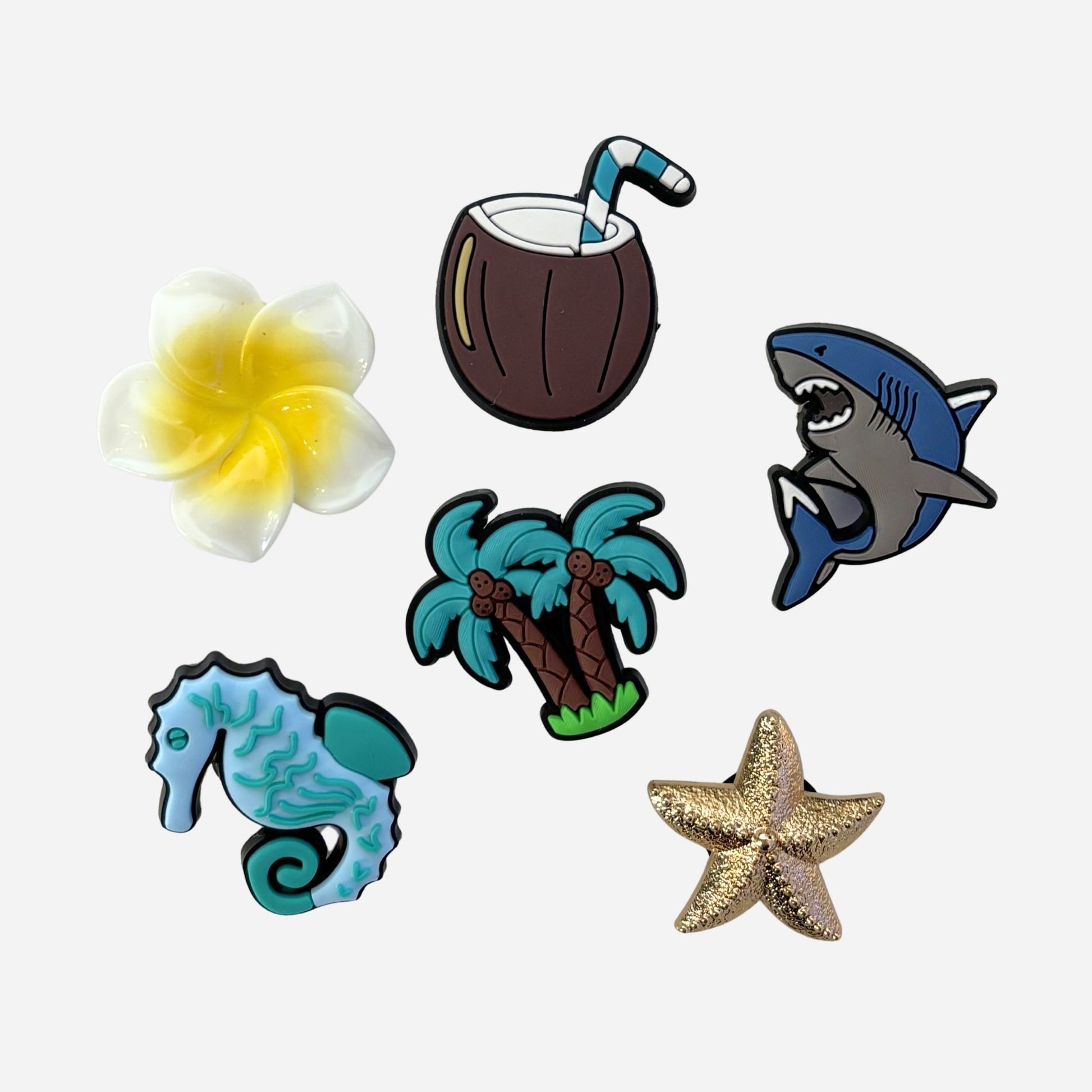 Ce pack de pin’s Ocean pour clogs est inspiré des vacances, du sable chaud et de l’eau turquoise.